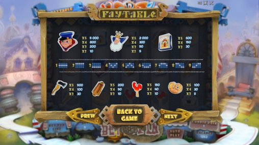 На экране игрового автомата «Вовка в тридевятом царстве» можно увидеть самого Вовку, Царя, книгу сказок, топор, корыто, леденец на палочке, баранку, а также несколько особых символов: Wild (сундук), Scatter (печь) и Bonus (набор инструментов). Их возможности обсуждаются ниже:
