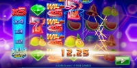 На барабанах видео-слота выпадают бриллианты, арбузные дольки, колокольчики, пылающие семерки, лимоны и вишенки.
