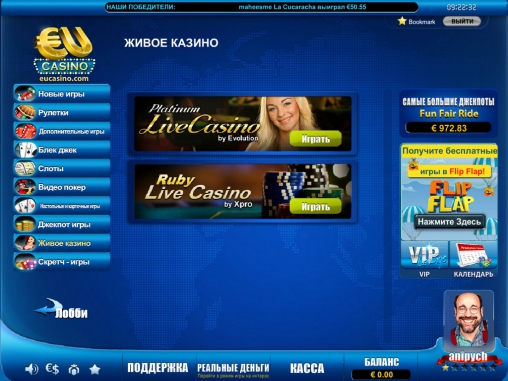 Игры с настоящими крупье предлагаются в двух отдельных лайв-казино EU. Оба можно использовать через клиентскую программу, которая доступна для бесплатного скачивания. Также разрешается запускать их прямо в браузере во флэш-варианте.