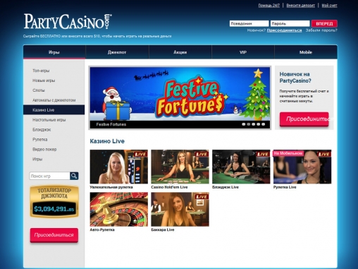 В интернет-казино Party азартные игры с реальными крупье вынесены на отдельную страницу и являются лишь разделом основного заведения. Но они по-настоящему качественные, функциональные и зрелищные, потому можно не сомневаться, что они понравятся многим нашим читателям, предпочитающим азартные развлечения данного жанра.