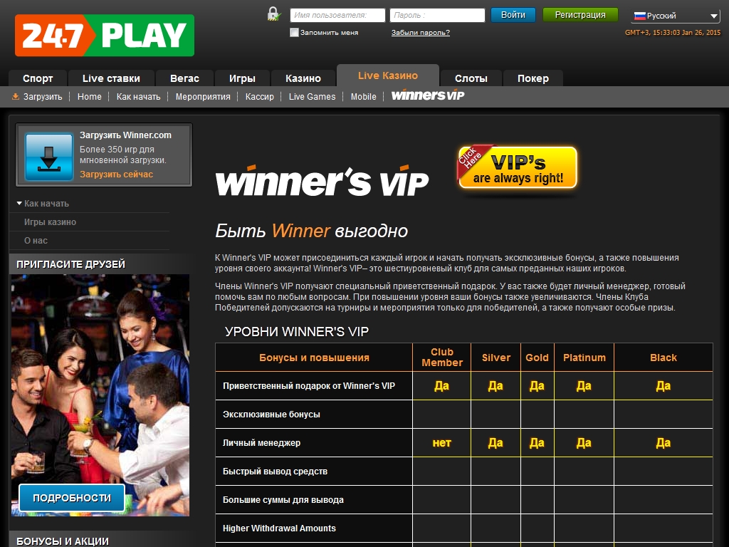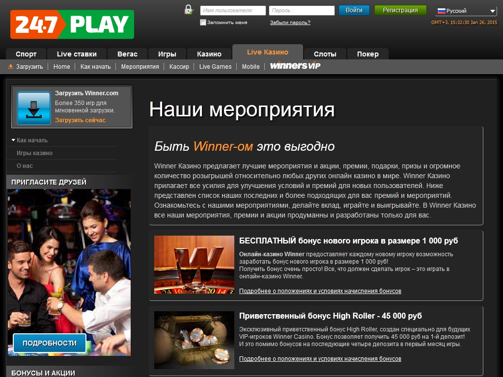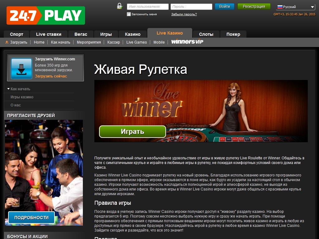 Winner является превосходным онлайн-порталом в целом, а его «живое» казино представляет собой великолепный сайт в частности. Вы можете здесь играть в лучшие игры в компании привлекательных крупье, делая ставки в широком диапазоне и пользуясь различными бонусными предложениями. Все достоинства заведения рассматривались выше, поэтому не будем повторяться.