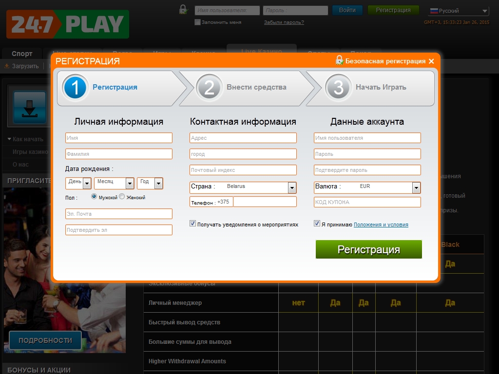 Но особо насторожил перечень способов пополнения депозитного счета игрока. Надеюсь, что ошибаюсь, но создается впечатление, будто казино допускает в игру только игроков из России, делая очень неудобным ввод-вывод денег для иных стран постсоветского пространства.