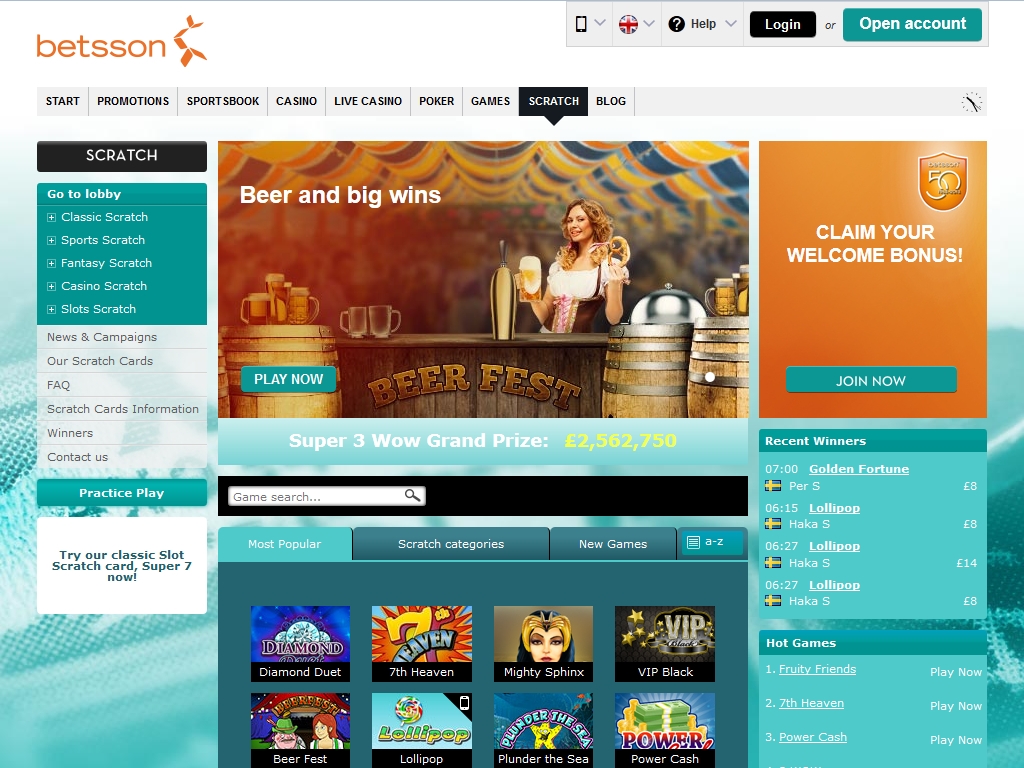 Сайт Betsson Scratch является частью известного портала Betsson, который охотно посещают тысячи любителей онлайн-казино, спортивного покера, букмекерских ставок, бинго, развлекательных и азартных игр. Непосредственно Betsson Scratch специализируется на виртуальных моментальных лотереях, которые также часто называют скрэтч-картами.