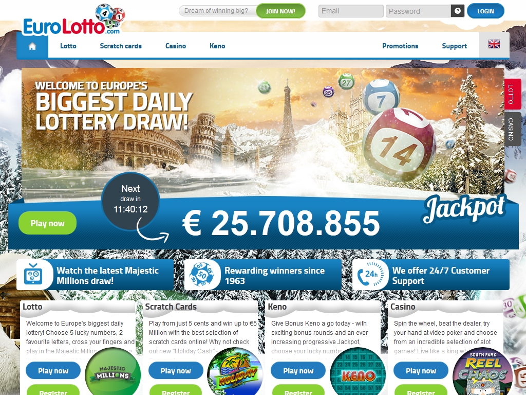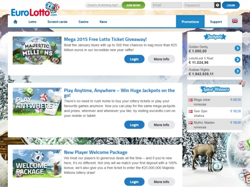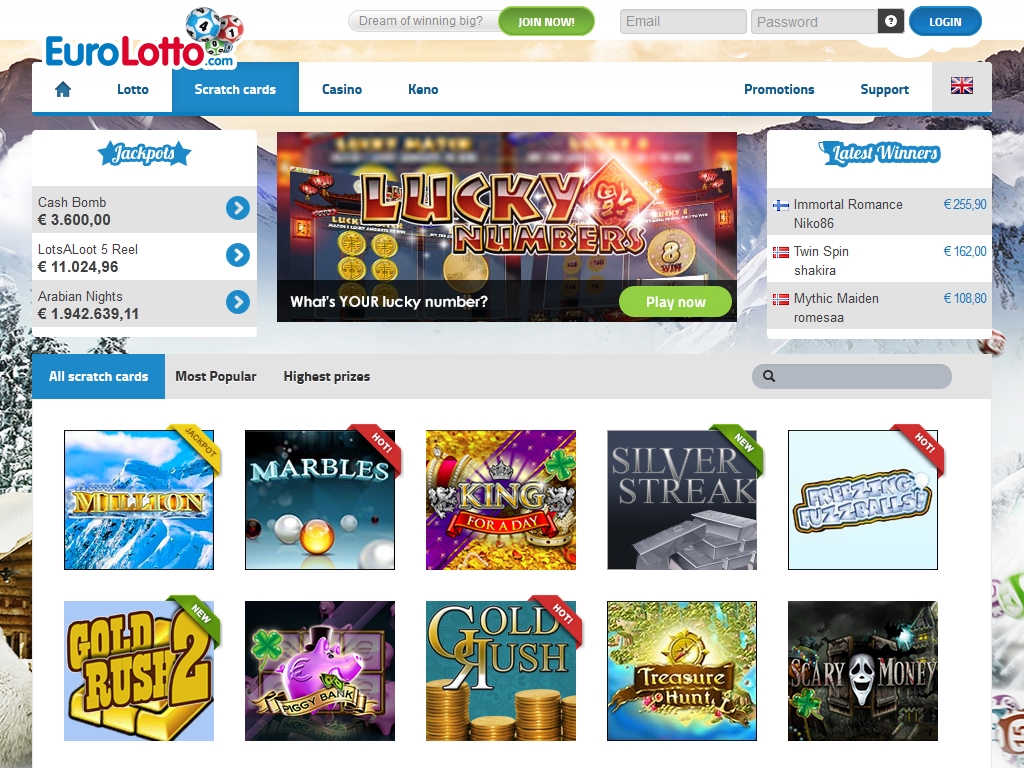 Выбор азартных развлечений на сайте EuroLotto небогат, но если вы любите лотереи, вам стоит обратить на него внимание. Во всяком случае, здесь можно побороться за очень солидный куш.