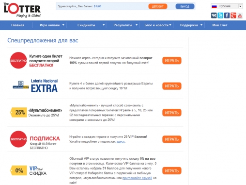 Также в The Lotter действует система накопления баллов, специальные поощрительные предложения для VIP игроков и реферальная программа.