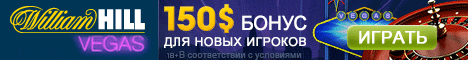 В онлайн-казино William Hill Vegas действуют различные интересные и выгодные предложения для новых и постоянных клиентов. Одной из новых акций заведения является 100% бонус для новых пользователей, размер которого может достигать $150. Получить его могут лишь игроки, которые впервые зарегистрировались в William Hill Vegas Casino и в первый раз пополняют счет.