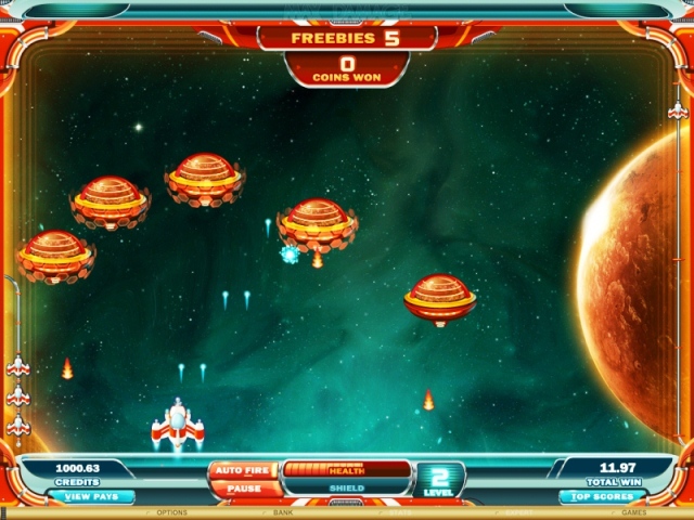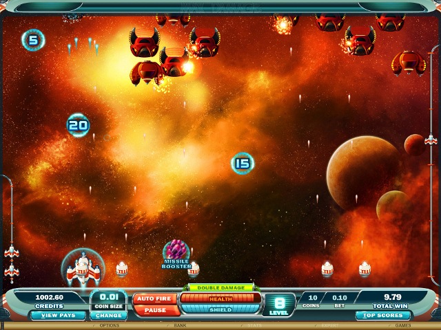 Эта игра отличается от привычных вам слотов. Она уникальна, в ее основе – инновационные технологии и стилистика игр shoot-em-up («перестреляй их всех»). Вы не найдете в ней барабанов и линий выплат, но вас ждут огромные выигрыши. Первый в коллекции Microgaming™ выпуск аркады Max Damage and the Alien Attack увлечет вас на поиски приключений в туманную, усыпанную звездами Вселенную, и вы будете подниматься все выше и выше, переходя от уровня к уровню, приближаясь к большому кушу. Вам предстоит защитить свой космический корабль от атаки инопланетян.