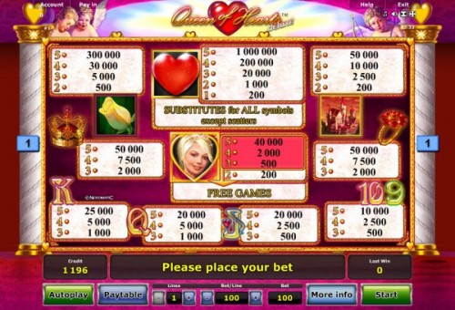 Безусловно, игрокам придется по вкусу популярный видео-слот Queen of Hearts Deluxe с огромным джекпотом, до 10 тысячного увеличения ставки на линию, в случае, если им удастся «влюбиться». В игре также выпадает большое количество бесплатных спинов, а может появиться Амур и наудачу применить более дикие символы.