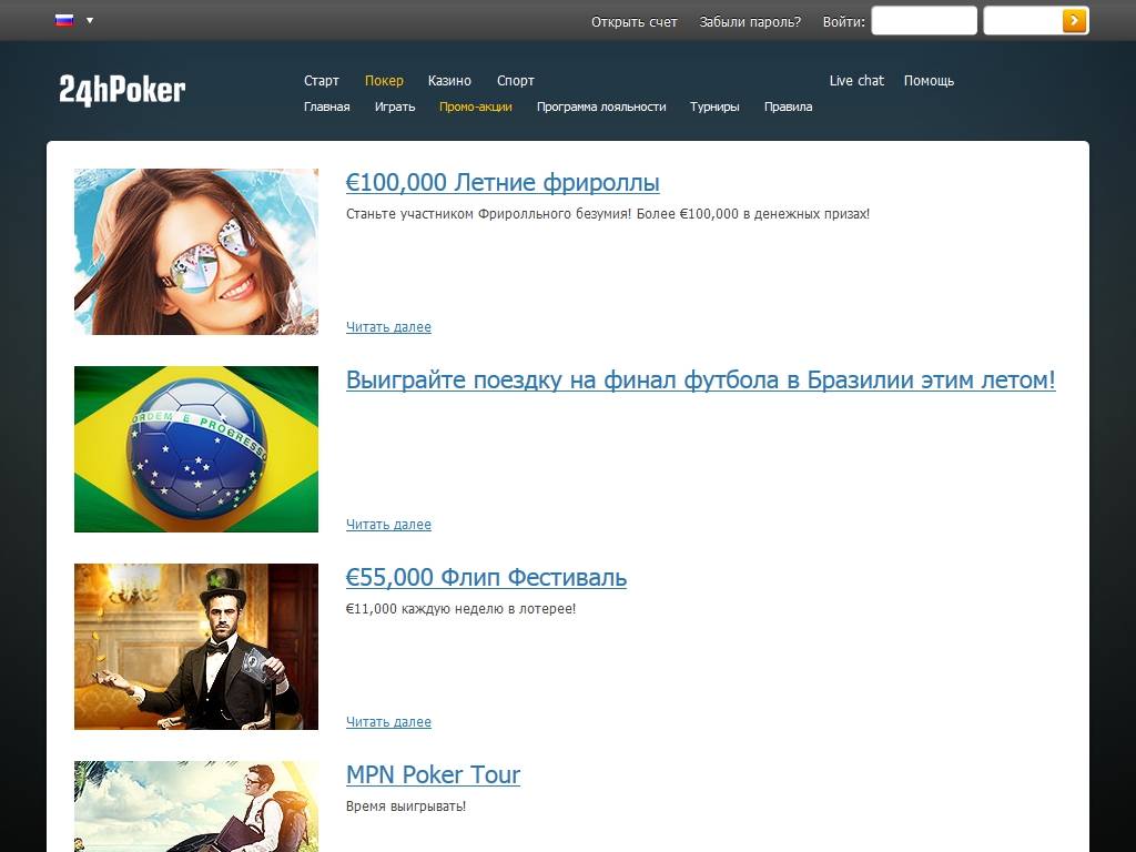 24hPoker проводит для своих игроков различные акции, в которых можно выиграть хорошие денежные призы.