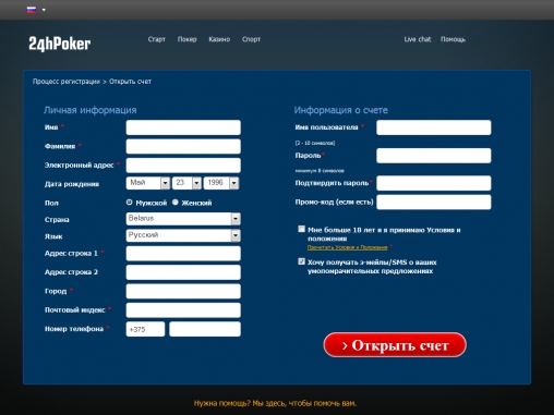 Пройдите несложную регистрацию в 24hPoker и играйте в покер