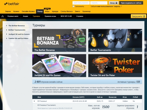 Турниры на Betfair