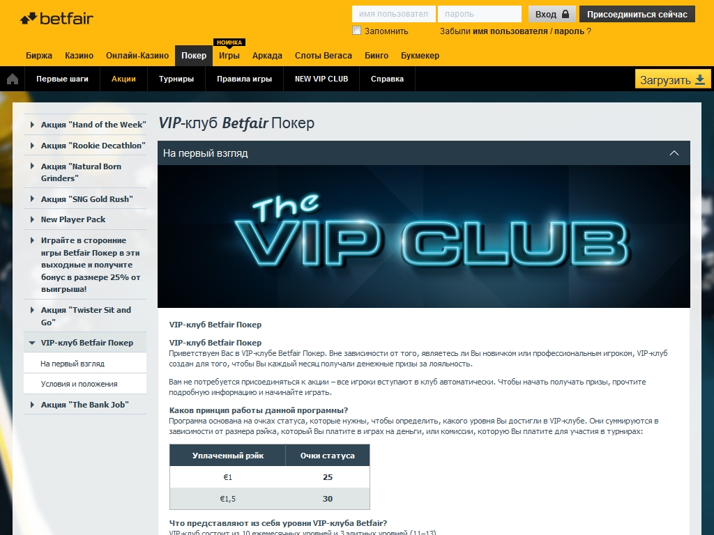 VIP-клуб Betfair