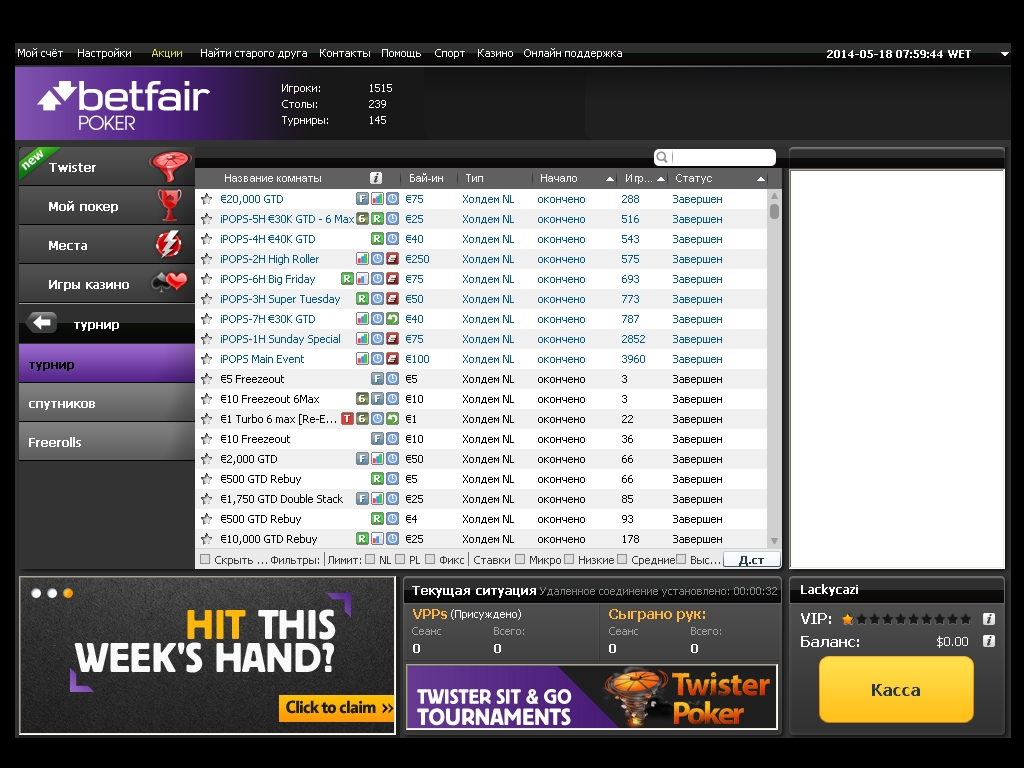 Хотел получить приветственные 50 баксов и сбежать, но все оказалось гораздо сложнее, чем я думал. Так что пока просто играю на турнирах по субботам, они тут весьма интересные бывают.
