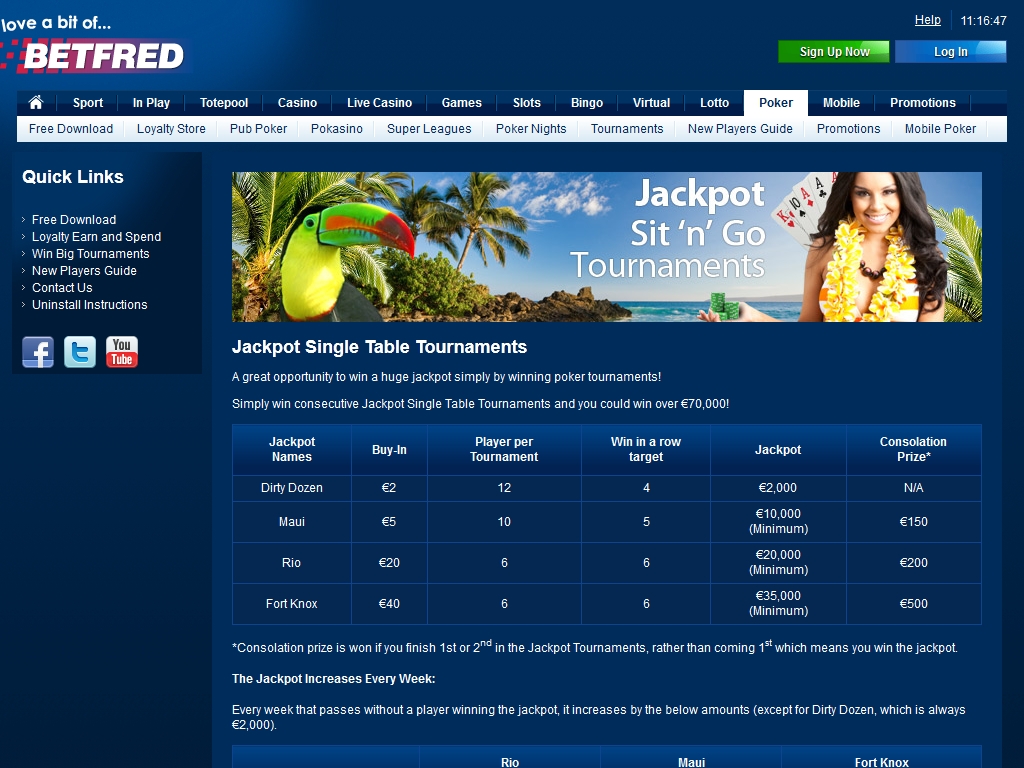 Fort Knox – байн $59. Джек-пот от 50000 долларов за первые места в шести турнирах подряд. Игроки, которые займут в шести турнирах подряд первые и вторые места, получают поощрительный приз в размере 750 долларов.