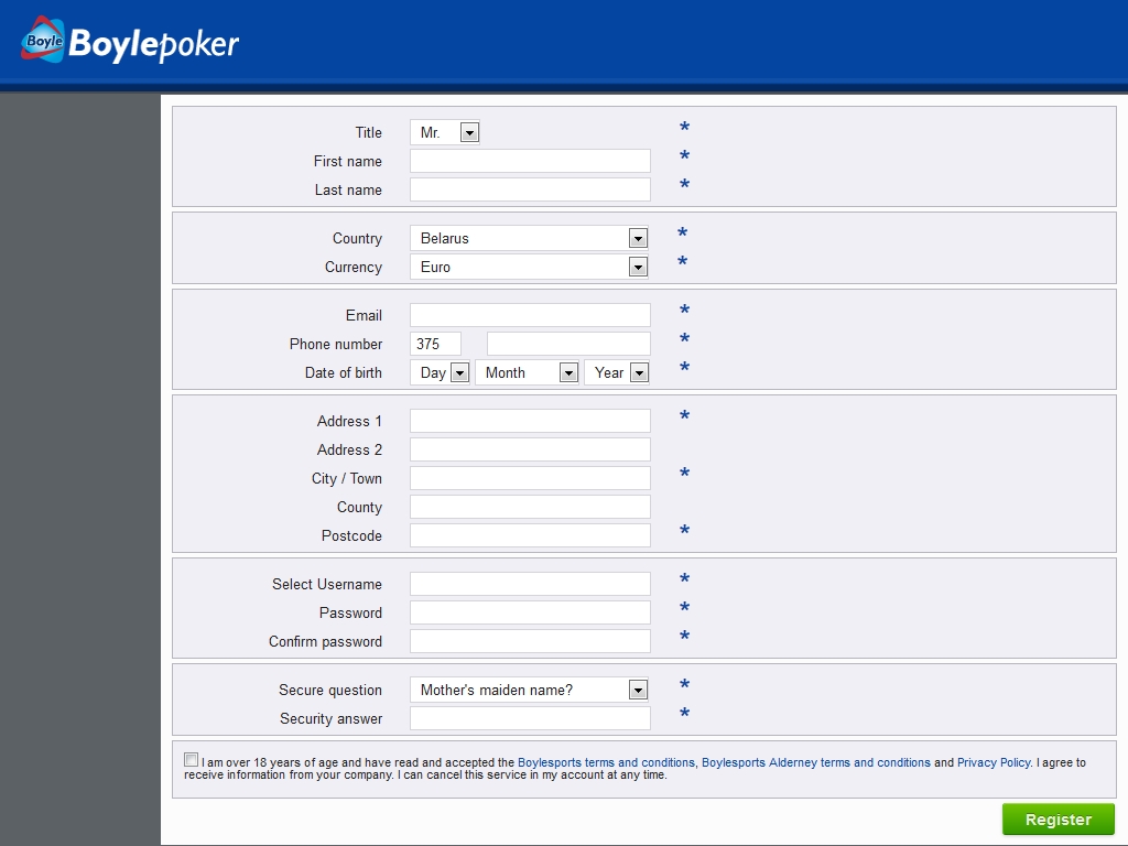 Пройдите несложную регистрацию в Boylepoker и играйте в покер