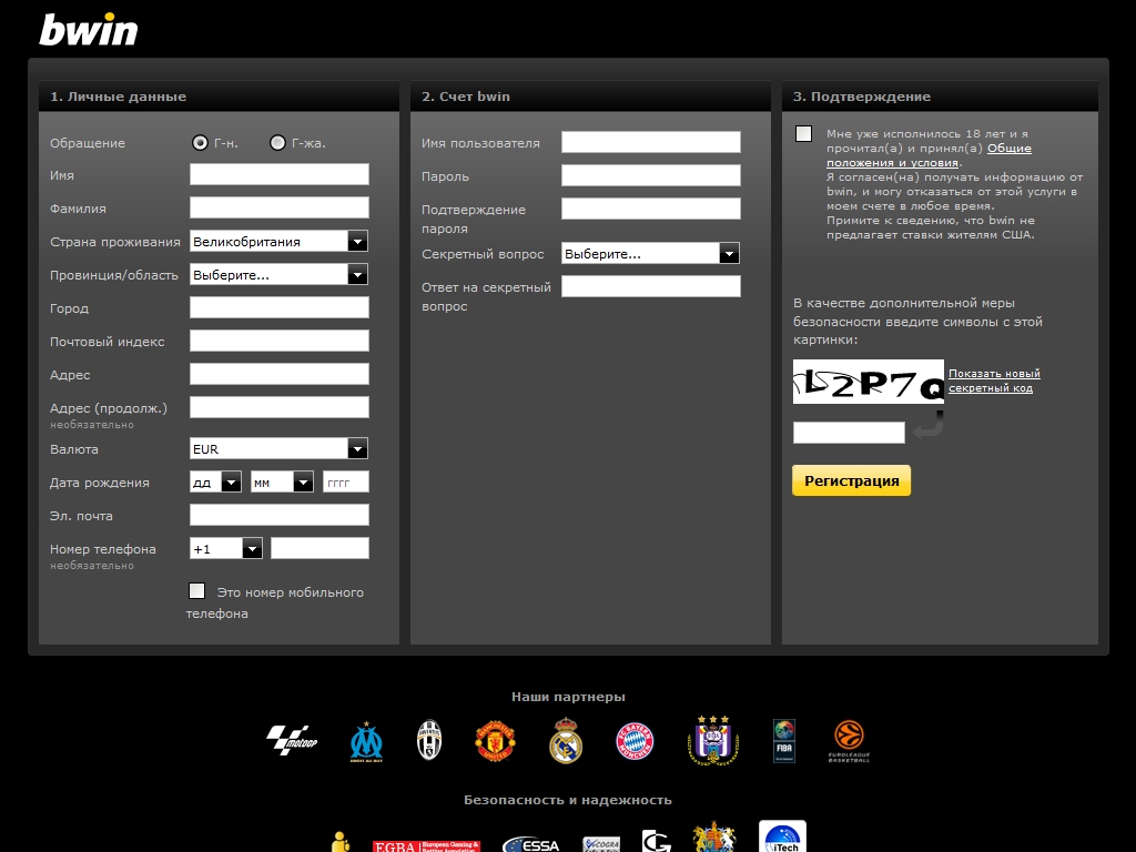 Регистрация в bwin