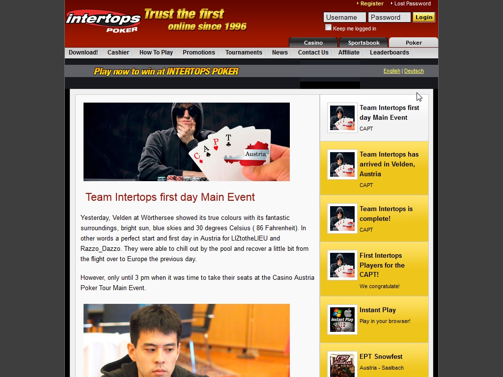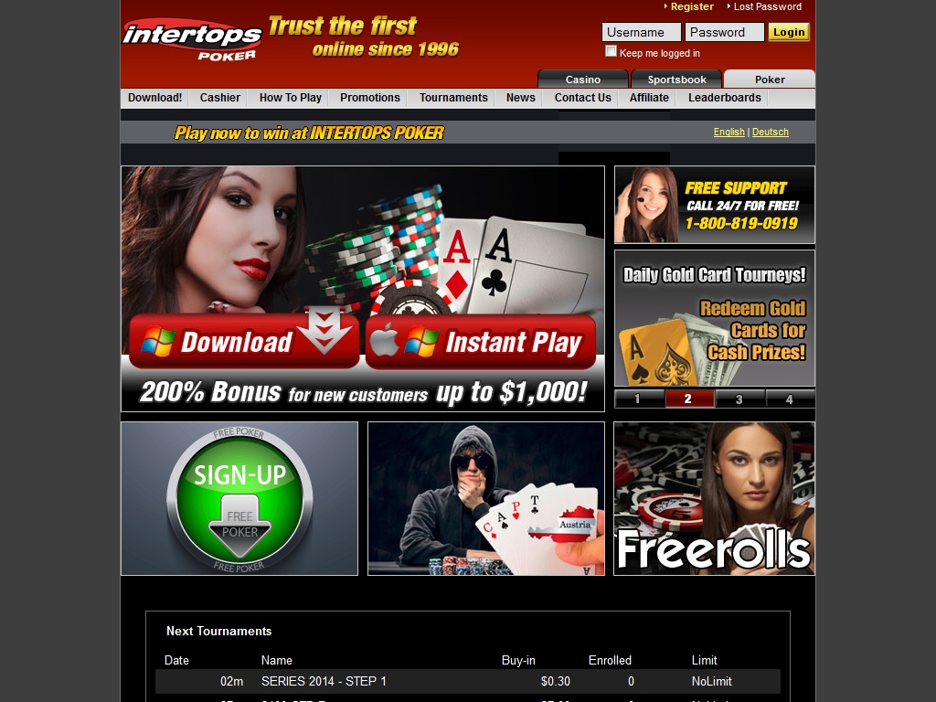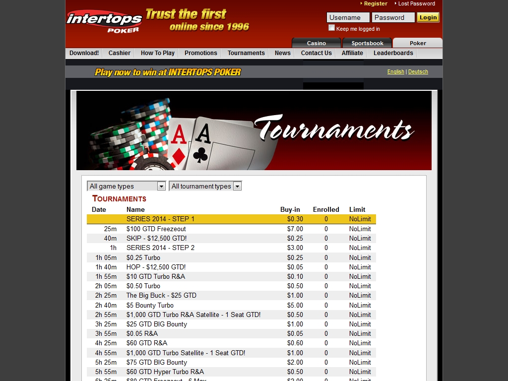 Несмотря на то, что Intertops Poker доступен только на английском и немецком языке, популярность его среди азартных игроков высокая и посещаемость игровой платформы в любое время суток очень хорошая.