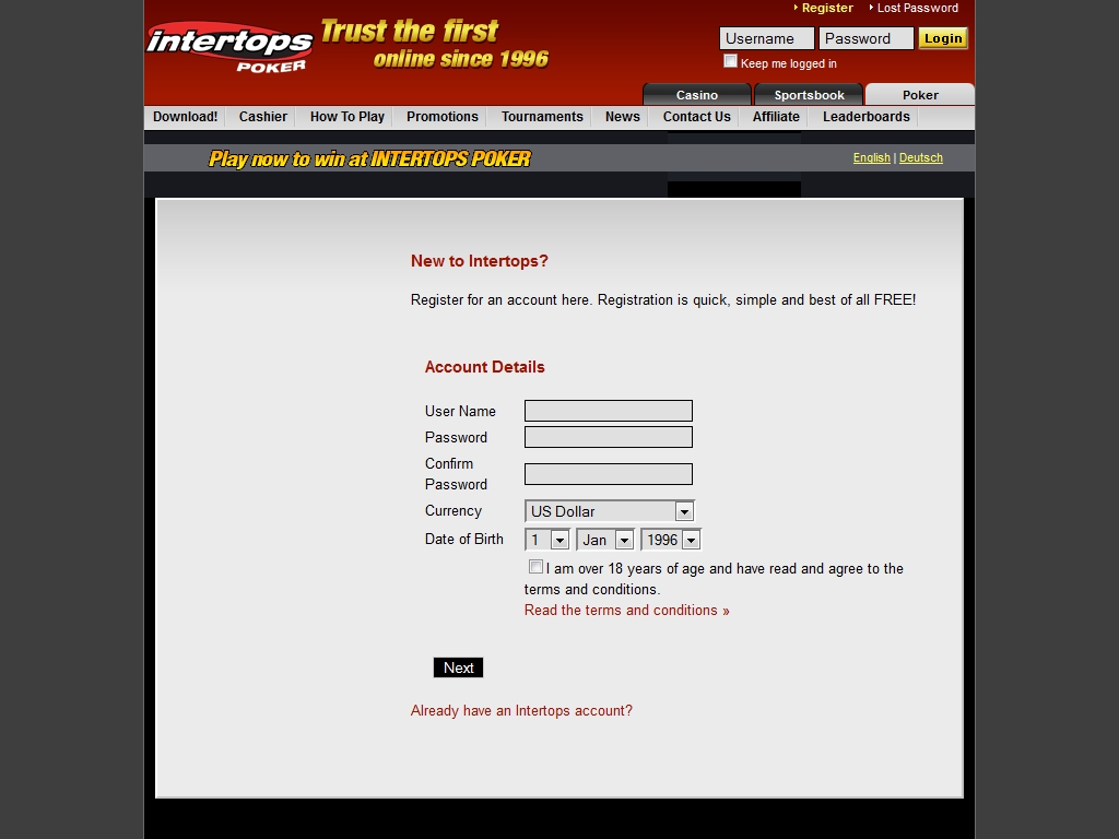Пройдите простую регистрацию в Intertops Poker и играйте в покер