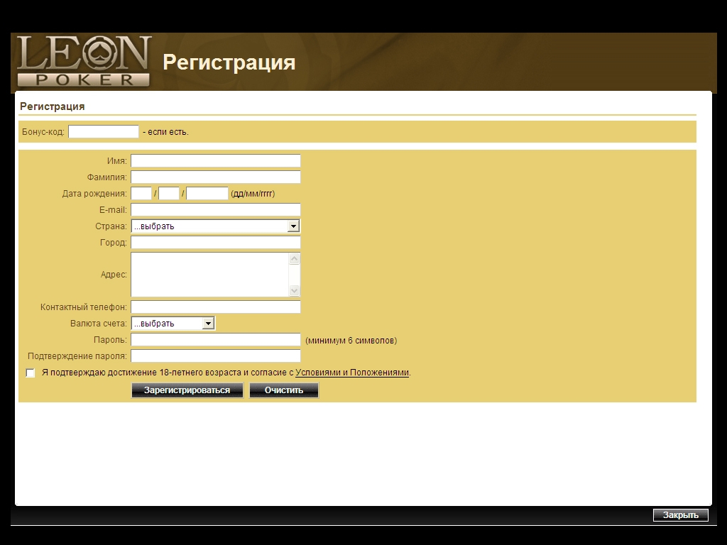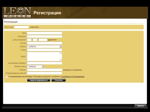 Регистрация в Leonpoker