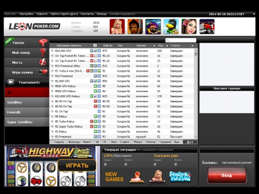 Leon Poker всемирно известный покер рум!Принимает ставки на различные виды спорта!Отличная бонусная политика!Множество различных акций!Ввод и вывод средств можно осуществлять различными способами!