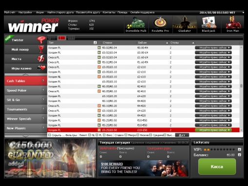 Хорошая покерная комната, здесь много столов, хороший бонус на первый депозит. А если стать членом клуба, то можно получить множество различных подарков. Кроме того, здесь частенько проводятся турниры.