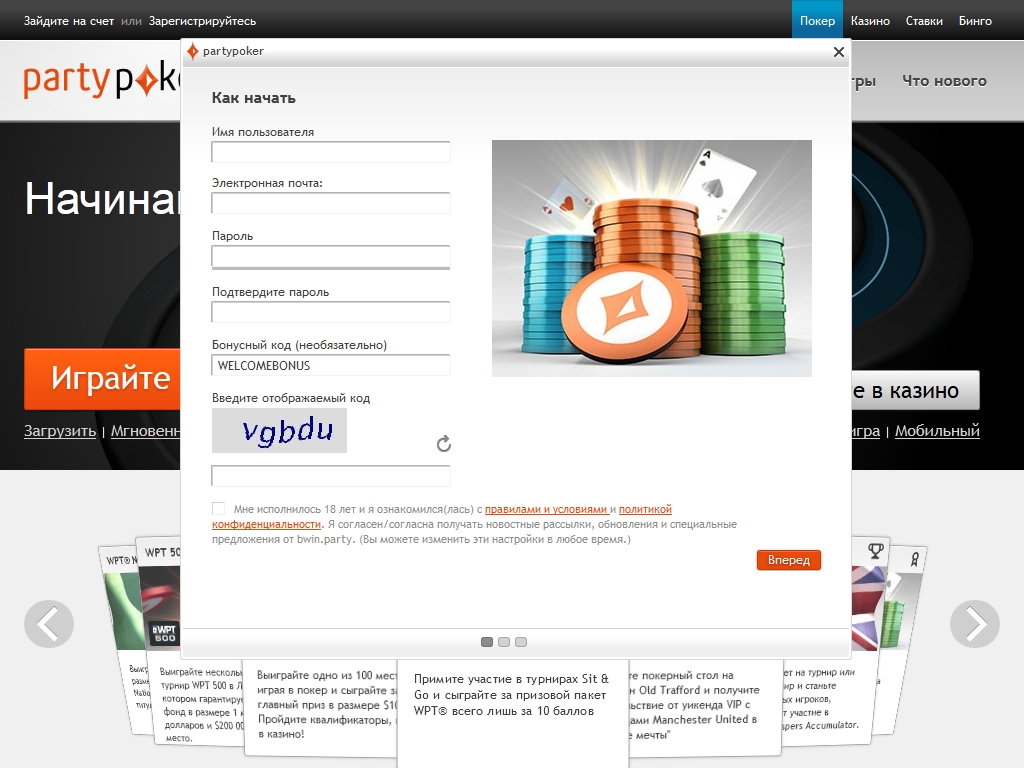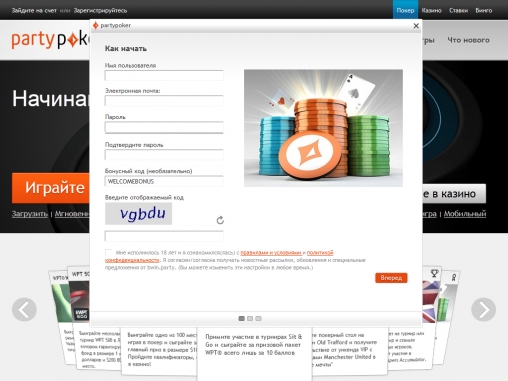 За первый депозит, сделанный на PartyPoker, покер-рум, выплачивает бонус 100% на суммы от $10 до $500.