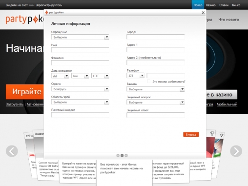 + ПО PartyPoker на русском языке, а также осуществляется техническая поддержка по е-майл.