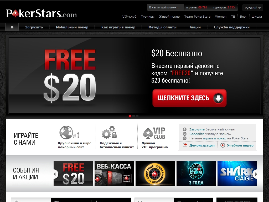 PokerStars предлагает своим игрокам большой выбор покерных игр, участие в многочисленных акциях, в которых ежемесячно разыгрывается по несколько миллионов долларов.
