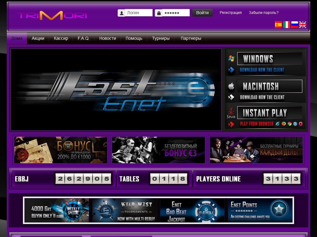 Trimori Poker использует качественное и надежное программное обеспечение, предоставленное сетью Enet Poker, поэтому игроки могут использовать различные удобные функции для игры на покер-руме.