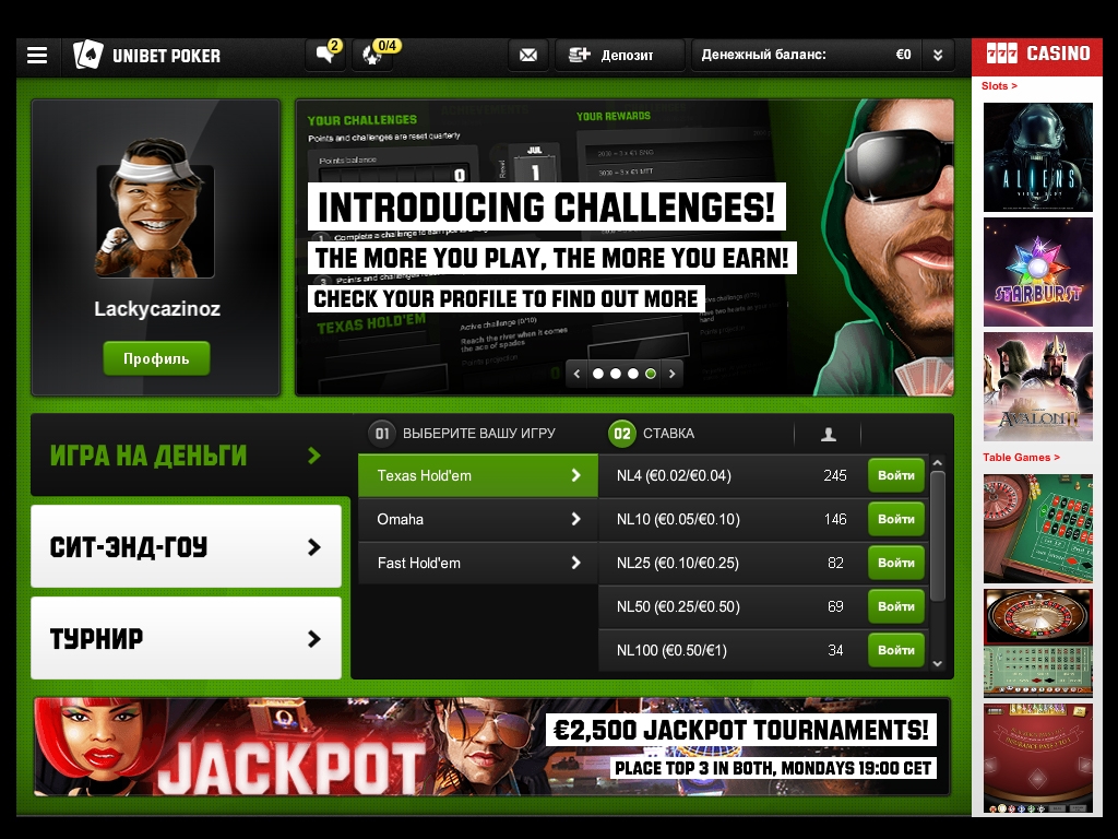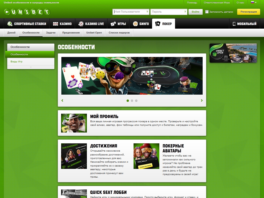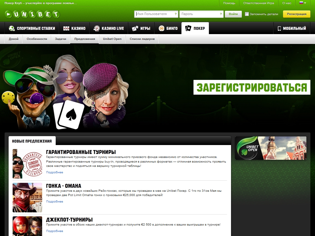 Отличный покер-рум, в котором часто проводятся различные турниры и акции. В Юнибете можно выиграть и порясающие призы в виде поездок на крупные турниры по покеру.