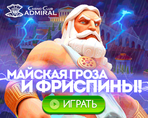 Новая информация от интернет клуба Адмирал придется к каждому азартному двору! С 1 по 4 мая встречайте яркую и запоминающуюся акцию – «Гроза в начале мая». В ней активно резвится Зевс Громовержец.