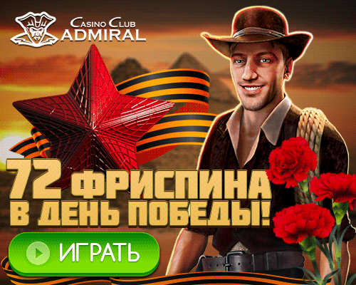 Если в день Победы Вы тоже намерены выигрывать, то Вам прямая дорога в интернет клуб Адмирал! Именно здесь 8-9 мая будет проходить турнир с призовым фондом в 100 000 рублей и 400FS!