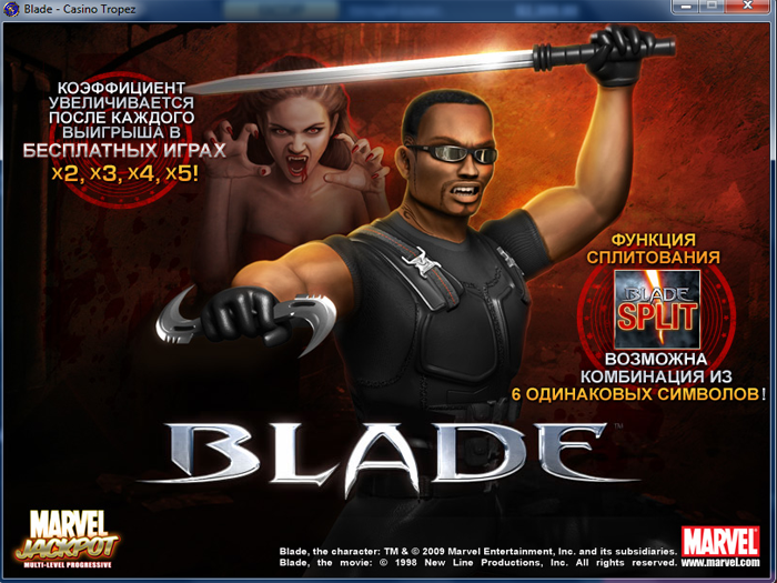 Тему вампиров любят многие, особенно молодежь. Это подметила компания-разработчик видеослотов и создала захватывающий и красочный игровой автомат на пять барабанов и двадцать линий под названием «Блэйд». В основе сюжета игры лежит популярный когда-то одноименный фильм с Уэсли Снайпсом в главной роли. С героями этого автомата геймер сможет поохотиться на кровопийц. В бесплатном слоте доступны бесплатные обороты, разделительные символы и прогрессивный джек-пот. Чтоб оценить все эти прелести, игроку не придется даже регистрироваться.