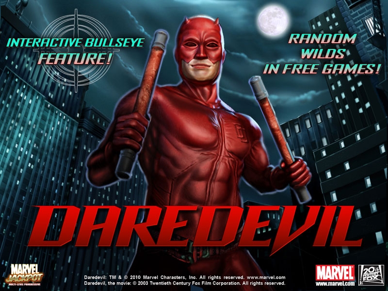 Не так давно был создан игровой автомат Daredevil. Эта новая игра создана по сюжету известного фильма с одноименным названием. Игровая площадка состоит из пяти барабанов , это позволяет игрокам развлекаться сразу на двадцати секторах игры. Главными действующими символами представляются персонажи из фильма о Сорвиголове.