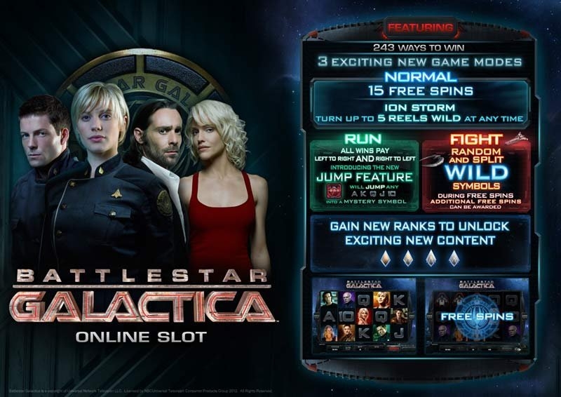 Не упустите шанс поиграть на уникальном видео слоте Battlestar Galactica. Этот аппарат создан по мотивам одноименного американского сериала. Название переводится как «Звёздный крейсер «Галактика». Играя на этом видео слоте, у пользователей есть ни много ни мало – 243 шанса стать обладателем неплохого выигрыша!