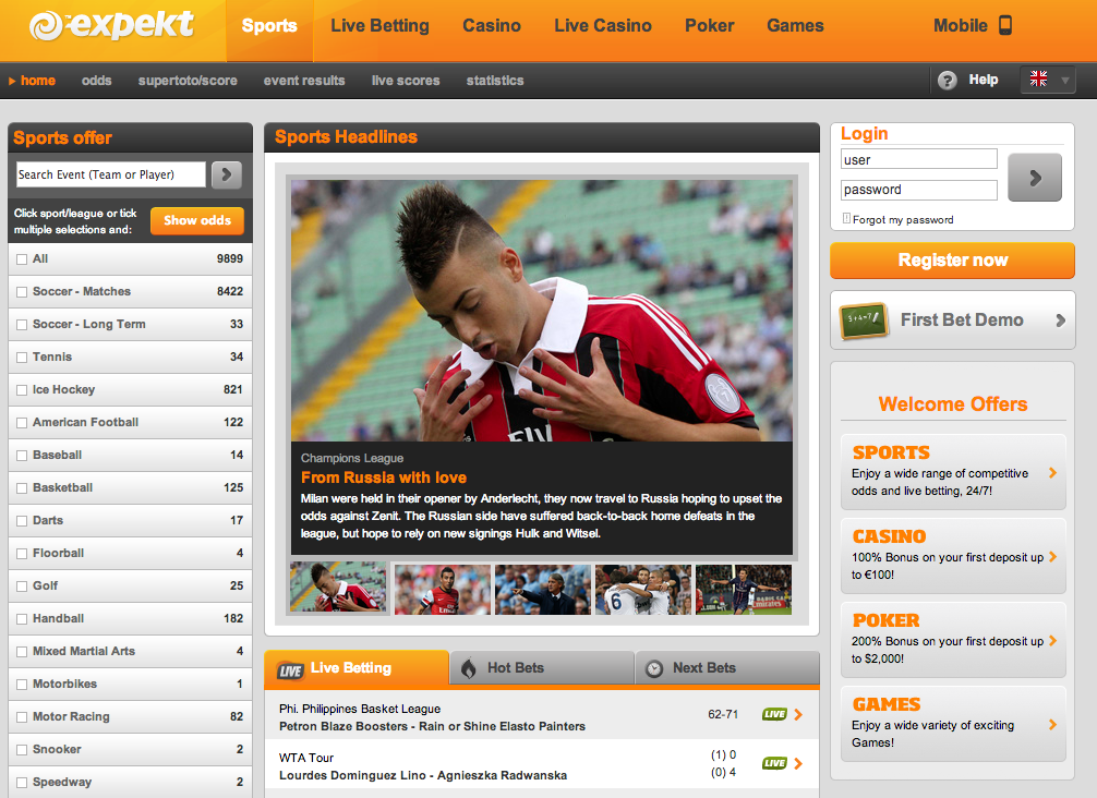 БК Expekt, основанная в 1999 году, является лидирующим международным сайтом для ставок на спорт. Ее клиентская база состоит с более чем полутора миллиона человек со всех уголков планеты. Может похвастаться заведение еще и очень широким выбором событий в своей линии.