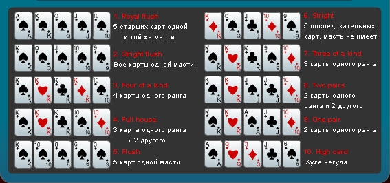 Играя на автомате «Видеопокер», вам нужно постараться получить выигрышную комбинацию. Игра предусматривает наличие девяти таких комбинаций.