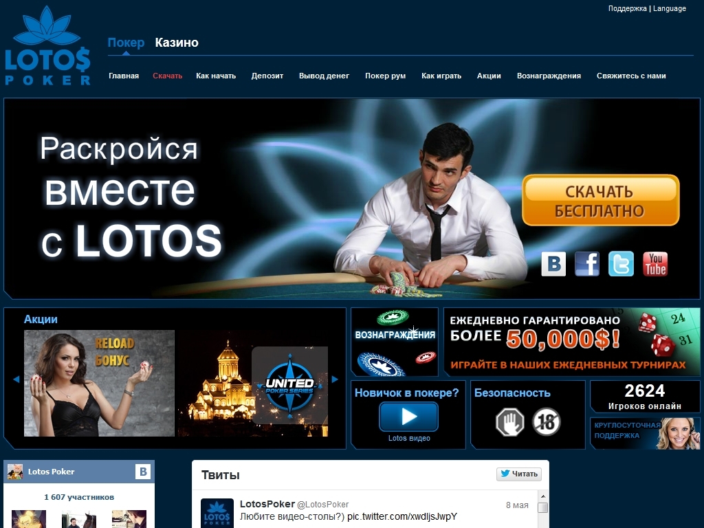 Сфера азартного бизнеса на сегодняшний день довольно развита, причем практически во всех странах мира. Ежедневно открываются новые казино, в том числе и казино онлайн, и даже создаются новые покер румы. Одним из относительно новых покер румов, который заслуживает Вашего внимания, является покер рум Lotos Poker как часть всемирной сети 888. Он уже успел зарекомендовать себя как покер рум с хорошей репутацией, который проводит различные турниры и акции для своих клиентов. Кстати, любой игрок может стать клиентом Lotos Poker, если ему уже есть восемнадцать лет и у него есть желание играть в азартные игры. Кстати, здесь играет много новичков, поэтому Вы часто здесь сможете встретить слабых игроков, а это Ваш дополнительный шанс на выигрыш.