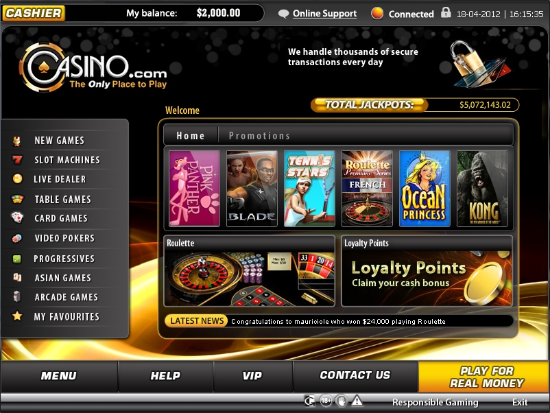 Достаточно популярным виртуальным казино является Casino.com, которое с недавнего времени «взяло ориентир», так сказать, на российских игроков. Стало быть, теперь вы сможете насладиться игрой в великолепном казино, которое полностью русифицировано. Казино, стоит отметить, еще сравнительно молодое, однако очень перспективное.