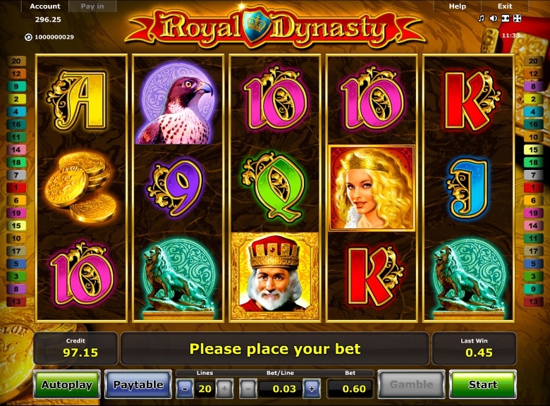 Выпуском однотипных бесплатных слот-машин не устают заниматься специалисты известной компании Новоматик. Однотипные у этих аппаратов только опции, а вот тематика бывает разной. Стоит отметить и еще один приятный момент – этот производитель очень много внимания уделяет графике, поэтому она и получается качественной. Данный обзор посвящен новому игровому автомату от Новоматик, который называется «Royal Dynasty» («Королевская династия»).