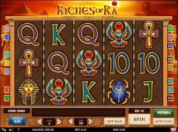 «Riches of Ra» перенесет вас в период Древнего Египта – время богов и мистических героев. Известно всем, что Ра – покровитель солнца. В этом игровом слоте он является главным персонажем, и вот именно он может вас наградить колоссальным выигрышем.