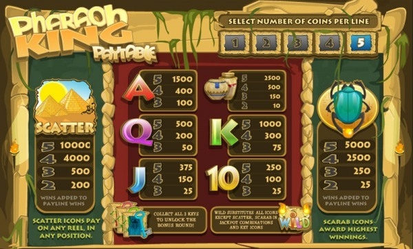 Древний Египет всегда будет интересной и популярной темой для создания игровых аппаратов. В этом нет ничего удивительного, потому что и мумии, и пирамиды, и Клеопатра, и Нил способствуют тому, чтобы одаривать геймеров подарками, если они играют виртуально в симулятор. Предлагаемый слот «Pharaon King» является бесплатным предложением компании «Betsoft». Такие игровые автоматы специально создавались для красивого представления истории Египта. Если воспользоваться таким приложением, то оно предоставит массу возможностей стать обладателем денежных вознаграждений. Очень сильно повезет тому, кто сможет открывать гробницы фараона.